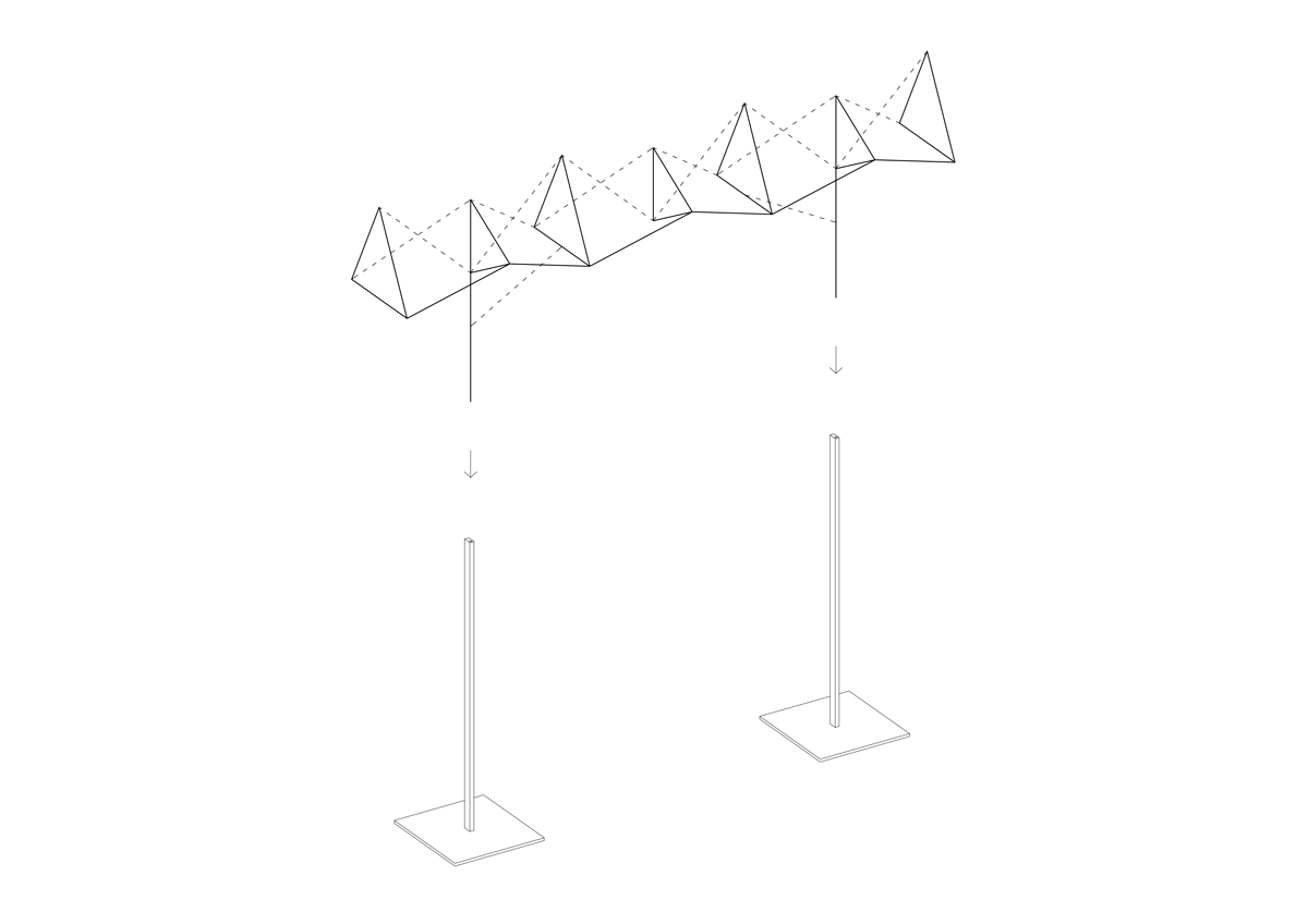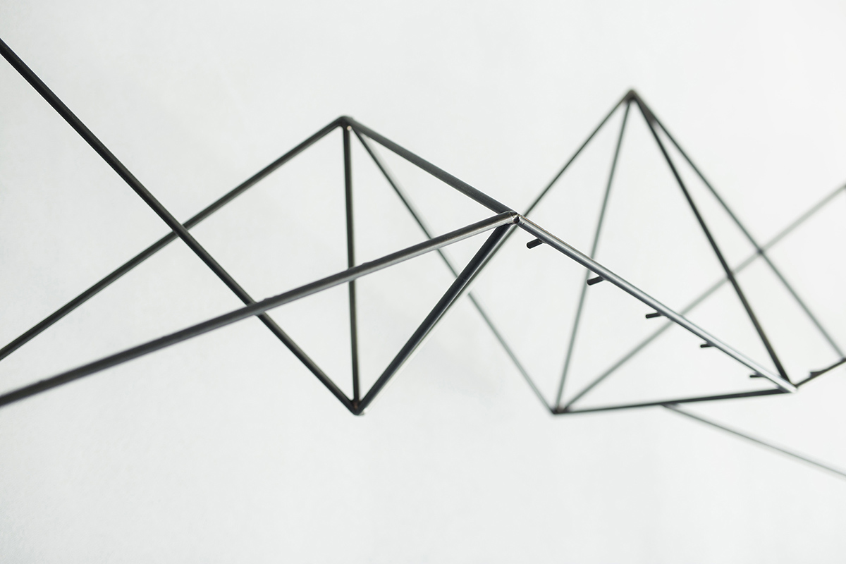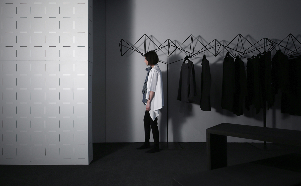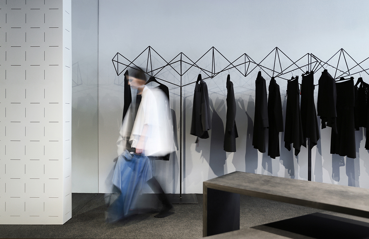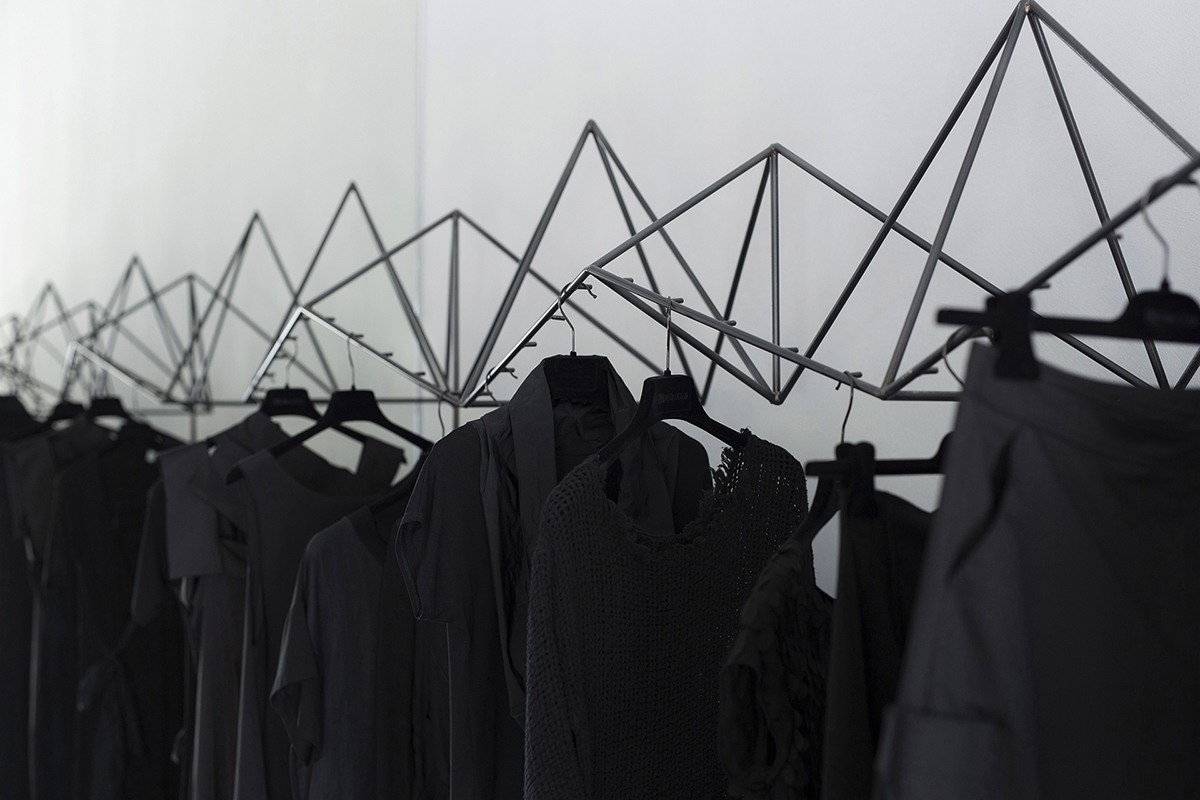 Ekspresivne vješalice su prostorne rešetke oslonjene na vitke čelične stope. Neobična forma doprinosi preglednosti robe uz povećanje istovremeno izloženih odjevnih predmeta. Poredane rubno, vješalice stvaraju dinamični vizualni okvir prostora.