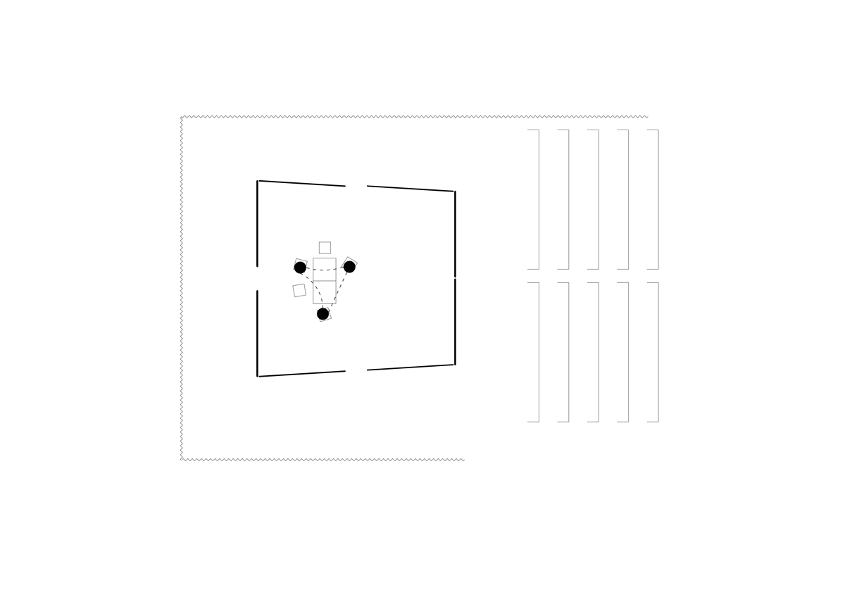 Predstava je izvedena u dvorani F22 Akademije dramske umjetnosti u Zagrebu. Sastoji se od metalnih građevinskih ograda koje tvore kavez unutar / izvan / na kojem se razvija dramska radnja. Scenografija prestaje biti kulisa za akciju i sama postajući akcijom.